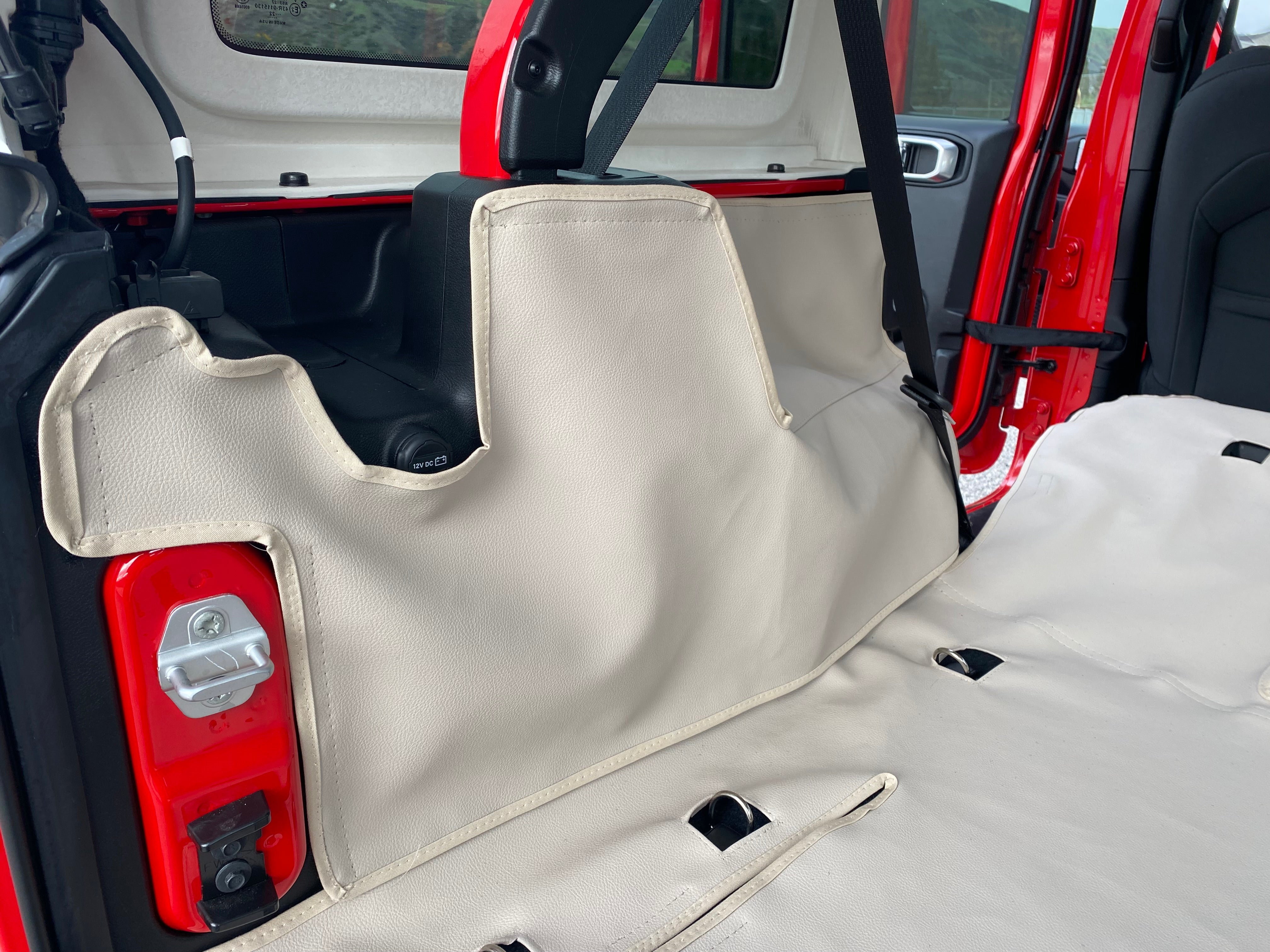 Custom fit to the back of the foldable seats, cargo area, and optional sides.