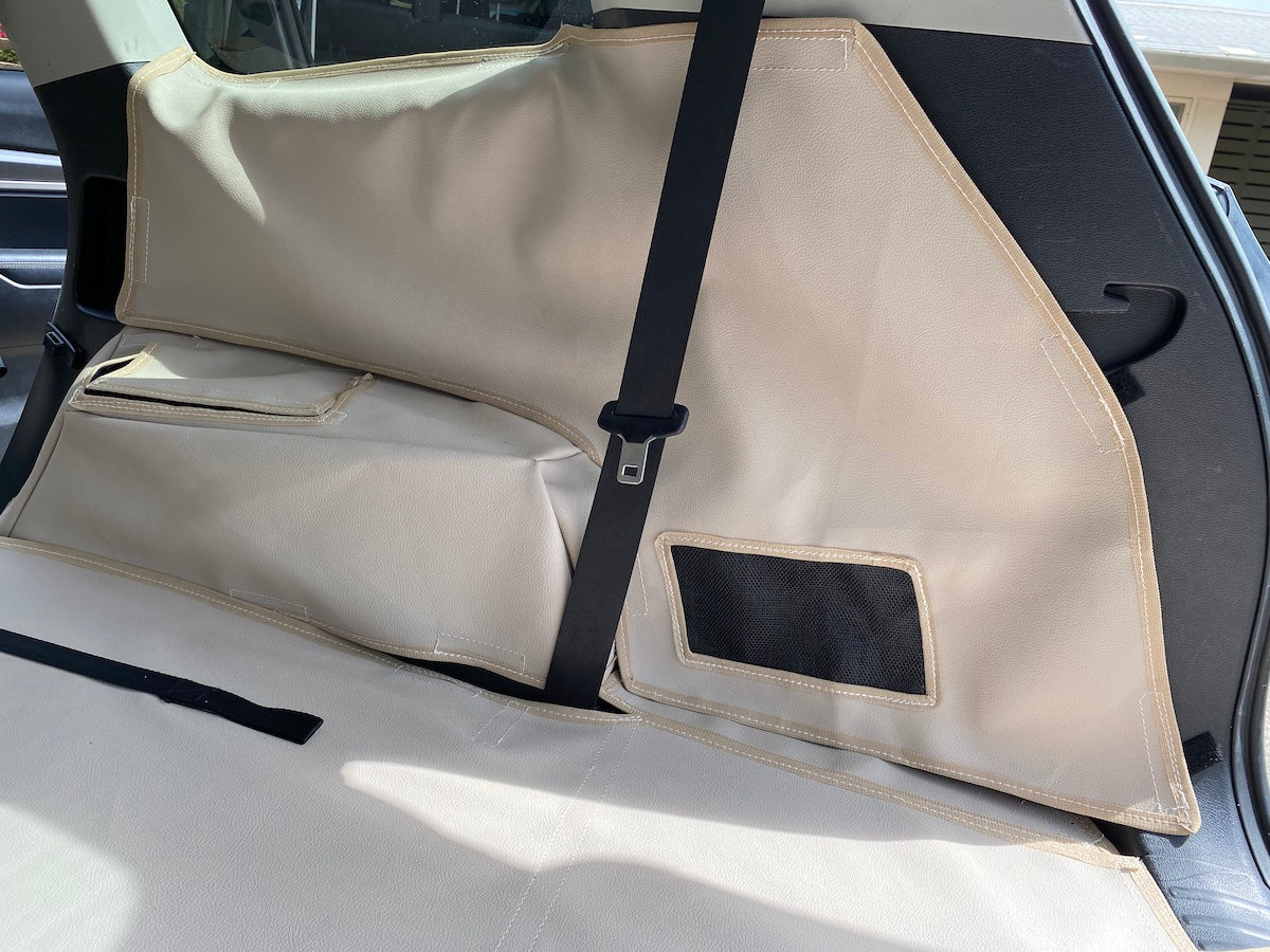 Each cargo liner is custom made to protect the carpet of your SUV. Dog owners spend endless time cleaning dog hair from the carpets of their SUV and it's impossible to clean. Our solution is a custom cargo liner for your SUV that covers the cargo area floor, back of the fold down seats, and add on side protection. Whether you travel with your seats folded down or with your fold down seats up, our cargo liners will keep your vehicle clean of dog hair or claw marks. Each cargo liner and cargo cover is a split cargo liner which allows to keep your seats up or down. View below to find your select vehicle.